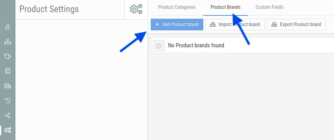 - Select the Product Brands Tab and click on + Add Product Brand: