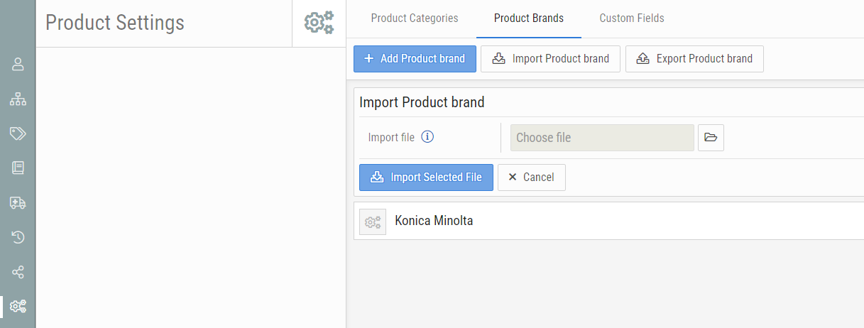 - Click Import Product Brand. Browse and select the modified CSV file and click Import Selected File.