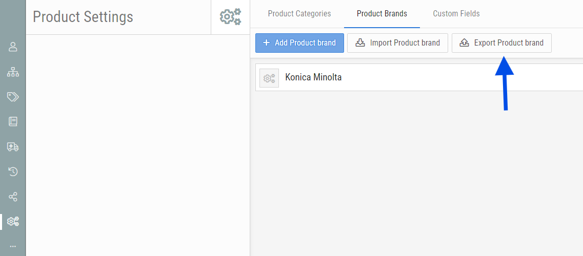 - Product Brands can be imported into BMS in bulk to save time and effort. To do so, first export the Product brands by clicking Export Product brand.