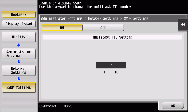 19. Ensure SSDP protocol is enabled under Utility > Administrator > Settings > Network Settings > SSDP Settings.