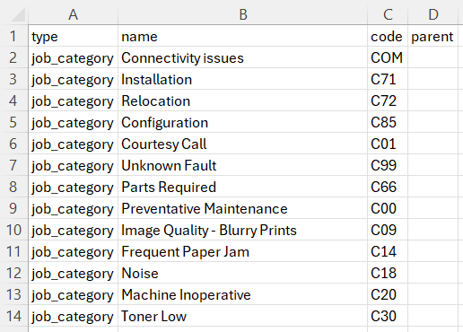 - Save the file and return to BMS, Admin > Service Settings > Job Categories