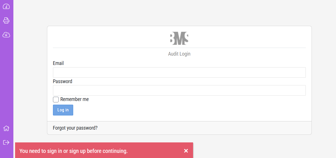 - Otherwise, if the password is unknown, from the BMS Audit Portal, follow the Forgot your password? process to reset your password.