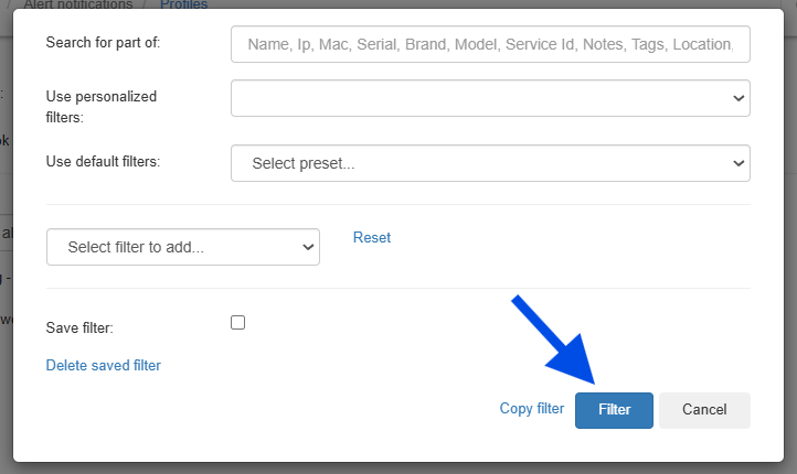 - Select Auto map (inactive). A Filter page will popup, no settings need to be changed, click on Filter.