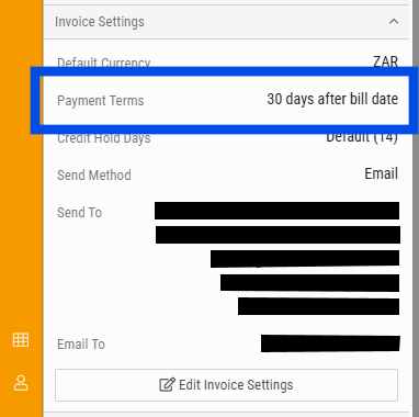 The Payment Terms (Invoice Due Date Period) can be set to a default value, which will be set every time a Customer is created. The Payment Term can still be modified when adjusting the Invoice Settings: