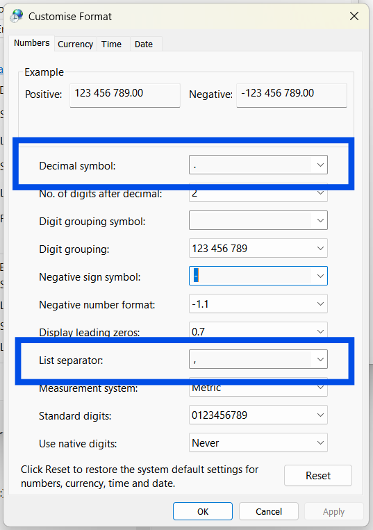 Problem: CSV files are not delimiting with a comma, instead a semi-colon is used which is causing import issues into BMS.